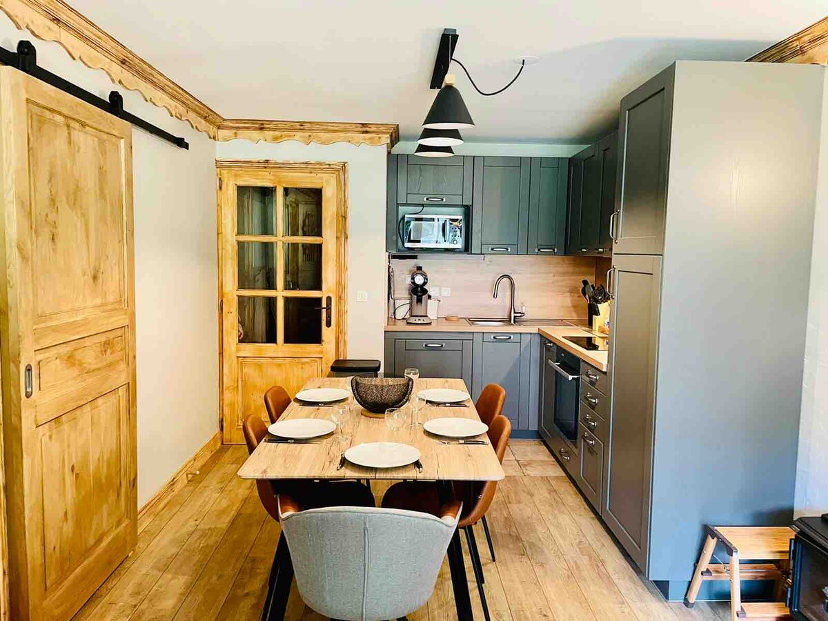 65m2 Smekklega innréttuð, sérstök áhersla á mörg smáatriði eins og liti, hönnun, hönnun, lýsingu og fylgihluti. Þú munt búa í lúxusdvöl í hjarta Saint Jean de Maurienne, í raðhúsinu þínu sem er skipulagt og útbúið í samræmi við staðla 4 stjörnu þar sem þú getur dvalið allt að 4 manns mjög þægilega. Stefnumarkandi staðsetning á þessum stað mun gera þér kleift að ganga auðveldlega að öllum þægindum og ferðamannastöðum á svæðinu.