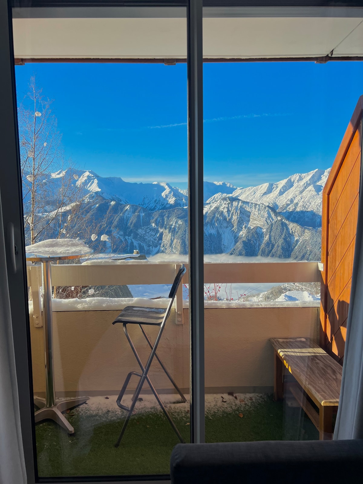 Alpe d 'Huez Houses offers you this pretty 5* family apartment, perfectly equipped, with 1 beautiful bedroom with terrace and resort and mountain views, a sleep area for 3 children or 1 or 2 adults. Kveikt Á SKÍÐUM! Sturtuklefi og aðskilið salerni, falleg stofa með óhindruðu útsýni yfir allan dvalarstaðinn og fjallið. Þetta lúxushúsnæði er öruggt. Þú hefur aðgang að upphitaðri sundlaug með yfirgripsmiklu útsýni, íþrótta- og vellíðunarherbergi með sánu. A 5* welco