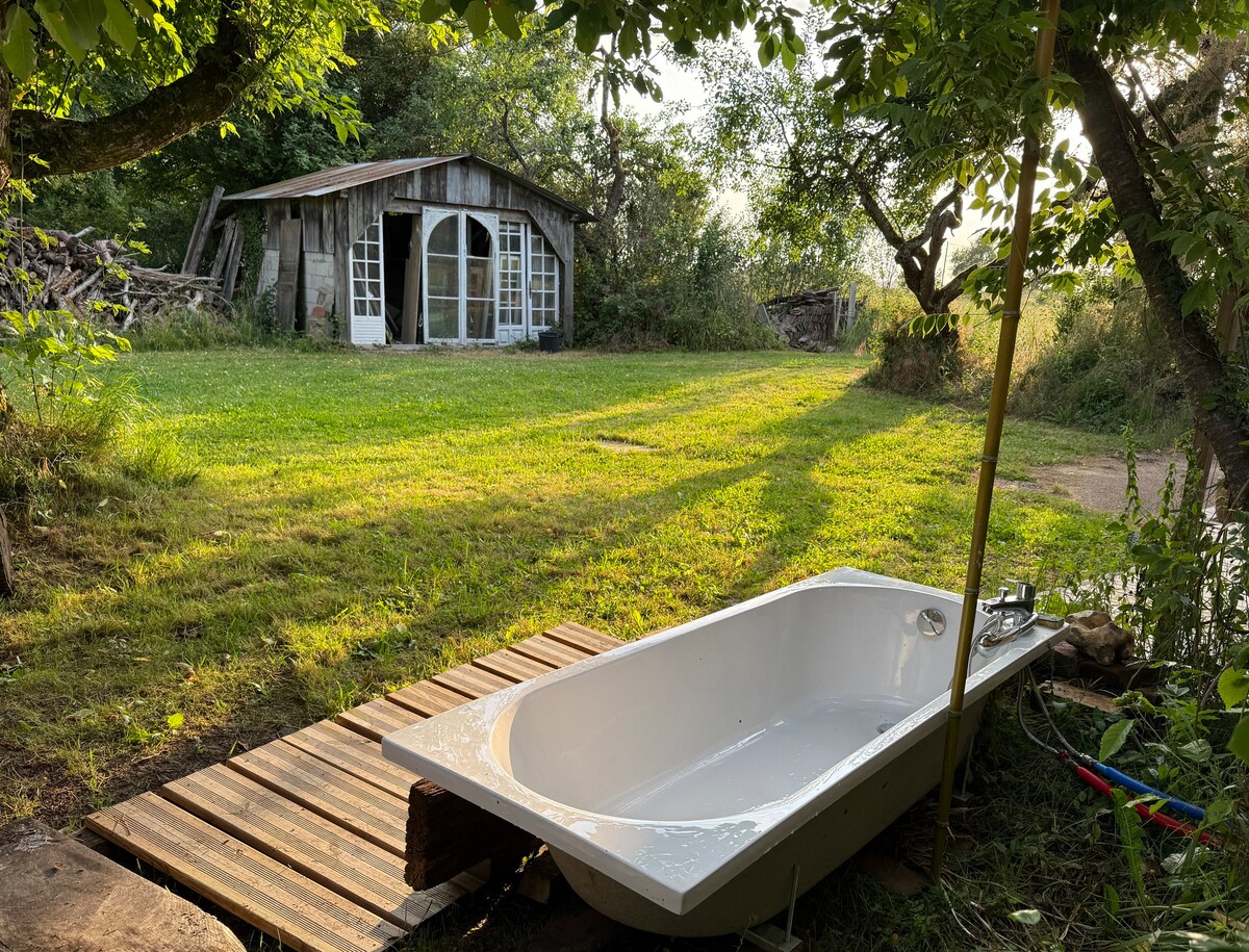 A 8 mn du centre ville d'Auxerre ,un cadre joli et calme au milieux de la forêt, nous vous proposons 3 petit studios pour 2 personnes ,sans vis à vis ,entrées privatives avec une zone jour et la chambre a l'étage.Vous serez indépendant et vous dérangerez personnes. Tout les espaces extérieur et la piscine sont à partage avec les autres hôtes . Tout le nécessaire est fourni,linge et produit de toilette son forni .