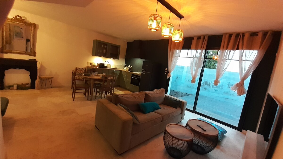 Hús á 70 m² á lokuðu landi sem þú munt hafa einkarétt á notkun. 1 svefnherbergi með 160 cm rúmi og 1 svefnherbergi með 2 90 cm rúmum (rúmföt fylgja) Baðherbergi (sturta/handklæði fylgja ekki) Eldhús með litlum og stórum tækjum. Fyrir ofan sundlaug á jörðu niðri (á árstíma) + garðhúsgögn. Engin hraðbókun til að koma í veg fyrir afrit. Lágmarksdvöl í júlí/ágúst er aðeins tekið við 7 nóttum.
