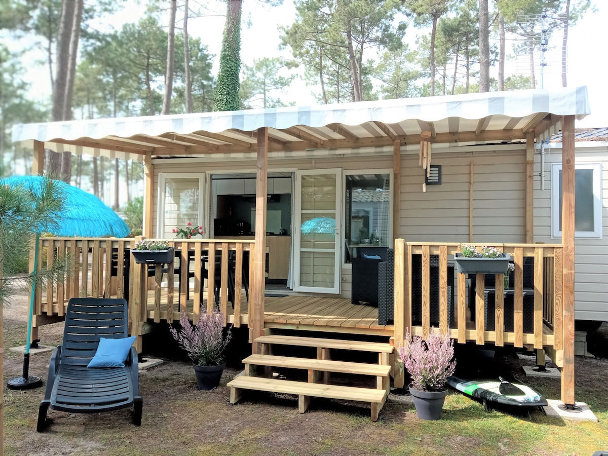 Kynningartilboð: Ein nótt án endurgjalds fyrir vikulanga dvöl í september og október! Ertu að leita að afslappandi helgi nær náttúrunni eða fjölskyldugistingu í vinalegu andrúmslofti? Ég býð ykkur velkomin frá febrúar á heimili mínu í Mobil Douces Landes , sem staðsett er í hjarta furuskógarins, á tjaldsvæðinu „Les dunes de Contis“ 3*. Þú getur notið fallega upphitaða vatnssvæðisins og afþreyingarinnar fram að All Saints 'Day!