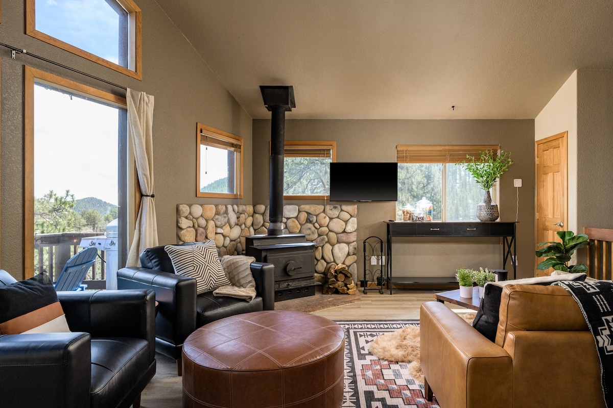 Ertu að leita að fullkomnum stað fyrir stelpuferð, fjölskylduferð eða notalegt frí? 🤩 Þetta nútímalega fjallaafdrep er fullt af mögnuðu útsýni, lúxusþægindum og endalausri afþreyingu; allt í aðeins 40 mínútna fjarlægð frá Red Rocks og innan við klukkustund frá Denver! 🏔️ 🌄 Magnað fjallaútsýni | 8 💦 manna heitur pottur | 🎥 80" kvikmyndahús með liggjandi sófum | 🎱 Leikjaherbergi | 🍫 S'ores Bar | Kokkteilskáli 🍷 utandyra | 🔥 Notalegur viðarbrennandi arinn + eldiviður 🪵 í boði