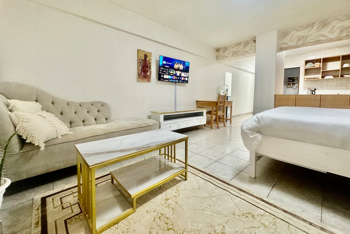 Stylish 1 bedroom in Westlands steps to GTC mall and Sarit Mall. • Located in a high-end, secure building in Westlands, in the heart of the city. • Modern and colourful apartment aesthetic with a boutique-hotel vibe with couch converting to full size bed. 2 beds for the price of 1! • Fully equipped kitchen with appliances & essentials • Cozy bedroom with hotel-style bedding • Fast, reliable Wi-Fi • Balcony access • Easy access to lifts, parking, restaurants, malls, and entertainment.