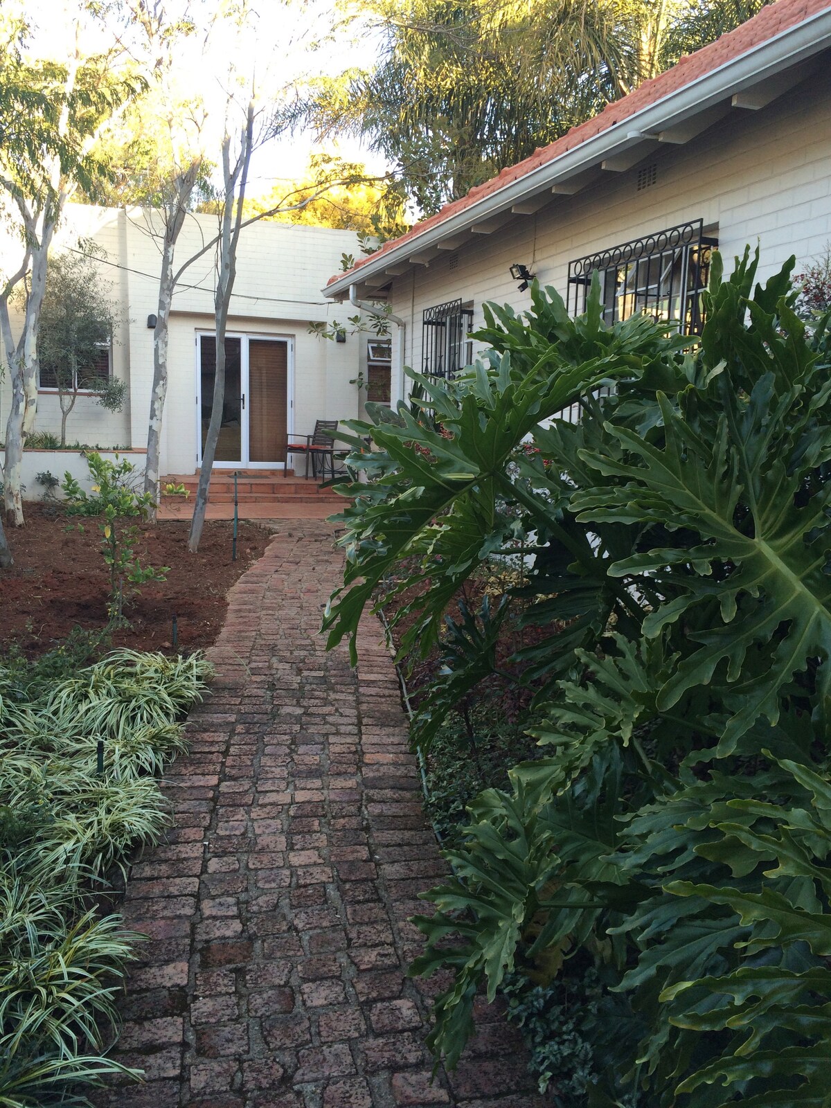 Our private guest suite is situated in a pretty garden in the leafy suburb of Saxonwold. It's a great location with easy highway access and walking distance to Rosebank shops and restaurants. The guest suite is attached to the main house but has its own entrance and secure parking in the driveway. Guests can relax in the private courtyard overlooking the rose garden and bird feeders.
