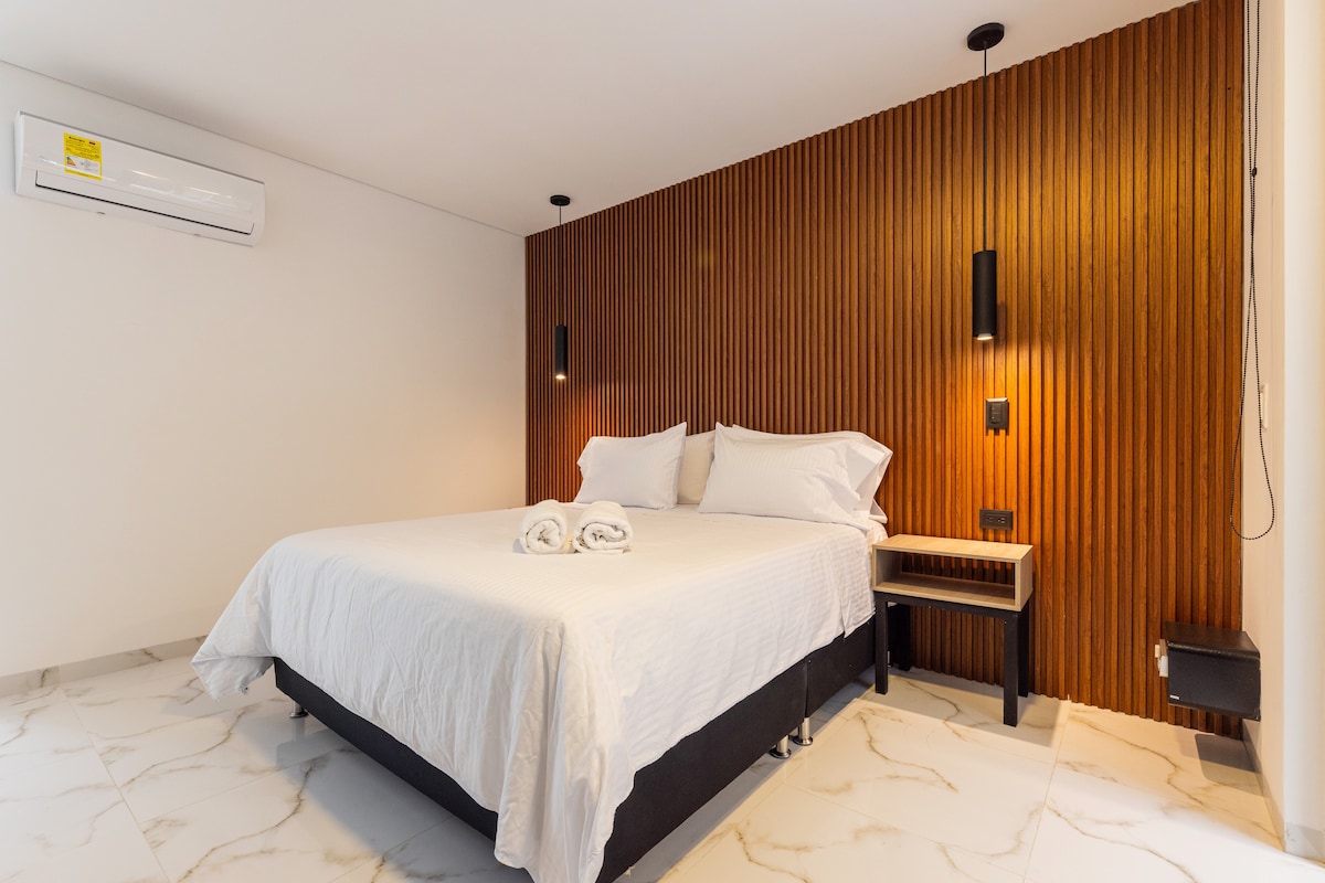 Discover the ultimate modern studio experience! Our stylish 50m² space boasts a balcony with nature views. Stay connected with our 300 MG stable wifi for working and enjoy your favorite shows on the smart TV. We have king size bed and washer. 24/7 Check in and security Pool and Gym in the building *Zero tolerance against sexual tourism. *Please see our house rules. * If you are Colombian you must pay IVA 19% additional.