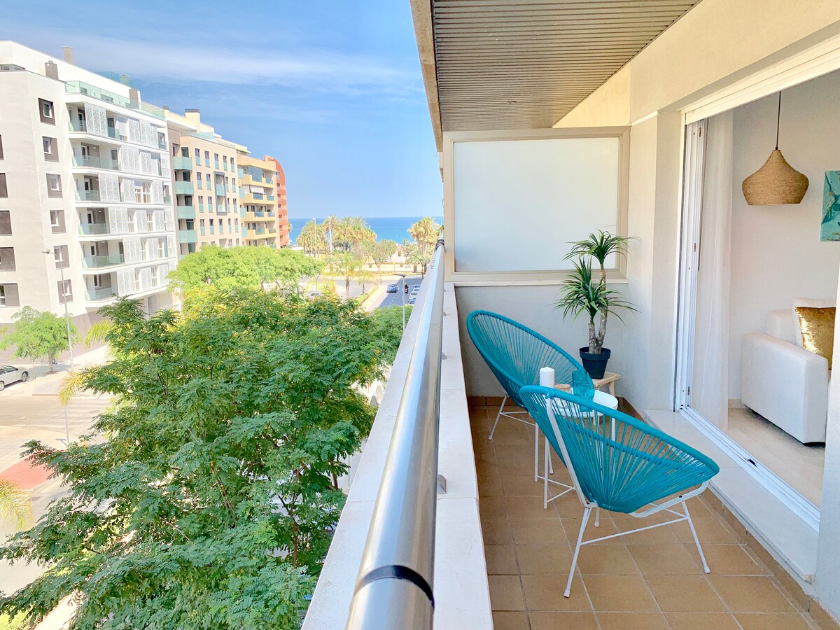 Íbúðin okkar við sjóinn er miðsvæðis og fullkomin fyrir pör sem vilja njóta nokkurra daga í Málaga með fallegu ströndinni, gamla bænum og fallegu umhverfi. Íbúðin er rúmgóð, björt og með mögnuðu sjávarútsýni. Hún var endurnýjuð að fullu árið 2019 og er með reglulegum breytingum. Hún er með svefnherbergi, fullbúið eldhús, baðherbergi með sturtu, opna verönd og stofu. Þú færð allt sem þú þarft fyrir þægilega dvöl: notalegt rúm, hratt þráðlaust net, loftræstingu og stórt snjallsjónvarp.