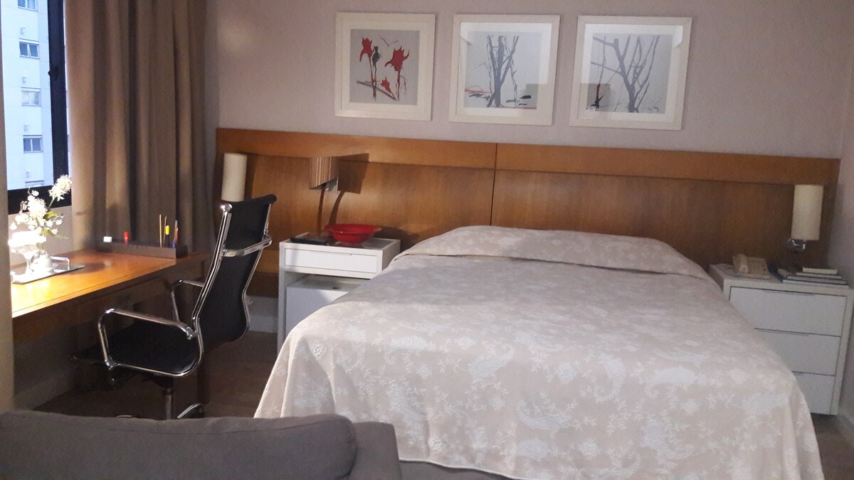 *** Vc tem a opção de 1 Cama de Casal King Size ou separando ficam 2 Camas de Solteiro. Localizado no Faria Lima Century Flat (Transamérica). No Bairro Itaim Bibi, com restaurantes, cafés charmosos, excelente para trabalhar e usufruir os arredores. A 1 quadra da Av. Faria Lima e Av. Cidade Jardim. Fácil acesso as Marginais, Parque Ibirapuera, Museus e Shoppings famosos( Iguatemi, Cidade Jardim, JK). Piscina, sauna e academia ginastica na cobertura. Manobrista e limpeza diaria gratuitos.