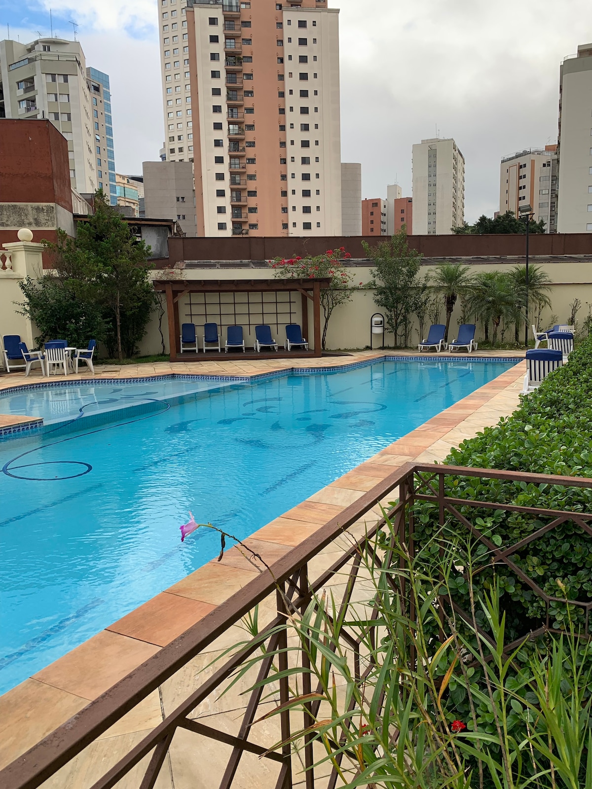 Extremely well located with maid service and cleaning every day. Excellent pool, gym and sauna on the rooftop. Valet parking. Surrounded by the most popular and award-winning restaurants and bars in São Paulo. Bright and ventilated apartment. Living room with sofa bed queen size for watching television and dining table for 4 people. Room with queen size bed and desk. Kitchen with all utensils. Parking space.