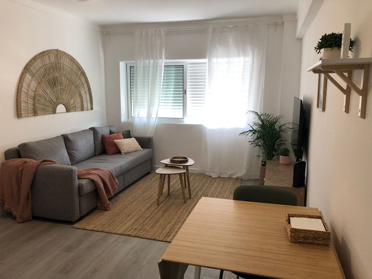 Nýlega uppgerð íbúð með 1 svefnherbergi nokkrum skrefum frá sandströndinni miðsvæðis á Costa da Caparica. Þetta er gott fyrir pör, einhleypa viðskiptaferðamenn og fjölskyldur með börn. Smekklega innréttað í öllu og nútímalegu eldhúsi með öllum tækjum og rúmgóðri stofu. Íbúðin er á efstu hæð með einkaaðgangi og henni fylgja handklæði, eldunarbúnaður, straujárn, hárþurrka, þráðlaust net og kapalsjónvarp.