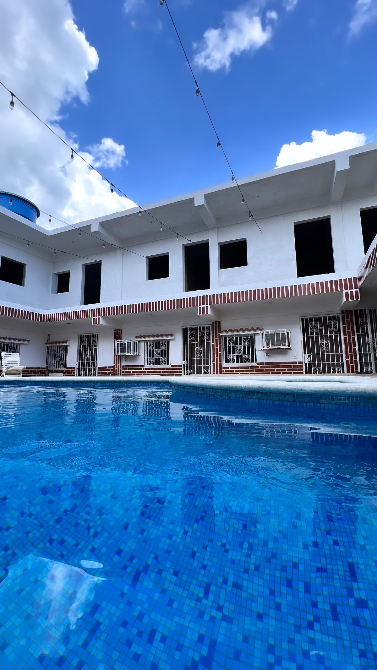 This listing is for a 5 person suite inside the Villa Marina Hotel; a welcoming, friendly, and cozy Hotel; located 1 block from shore, in the beautiful Morrocoy National Park in Chichiriviche, Falcón. Our staff provides excellent customer service, and supervise our rooms, able to lodge 2 to 6 guests. The amazing pools invite guests to swim and relax, while our restaurant, bar, mini market, and power plant provide what you need to make your stay enjoyable, homey and unforgettable.