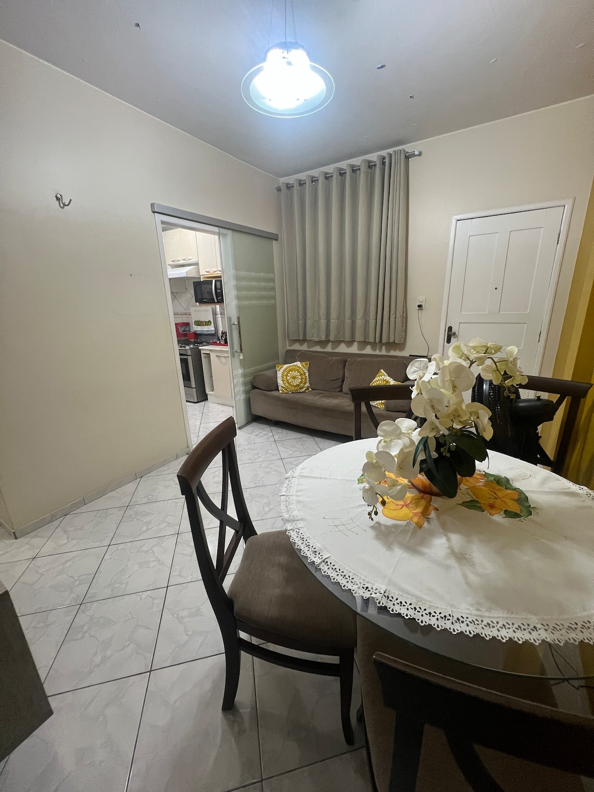 Excelente apartamento com: 2 quartos sendo 01 c/ banheiro reversivel, sala jantar/estar com mesa 6 cadeiras, tv, sofa, ar condicionado todos ambientes, cozinha completa c/ eletrodomésticos novos, microondas, fogão e geladeira c/frezer, lavanderia c/ maq. lavar roupas, sacada espaçosa. Garagem privativa.