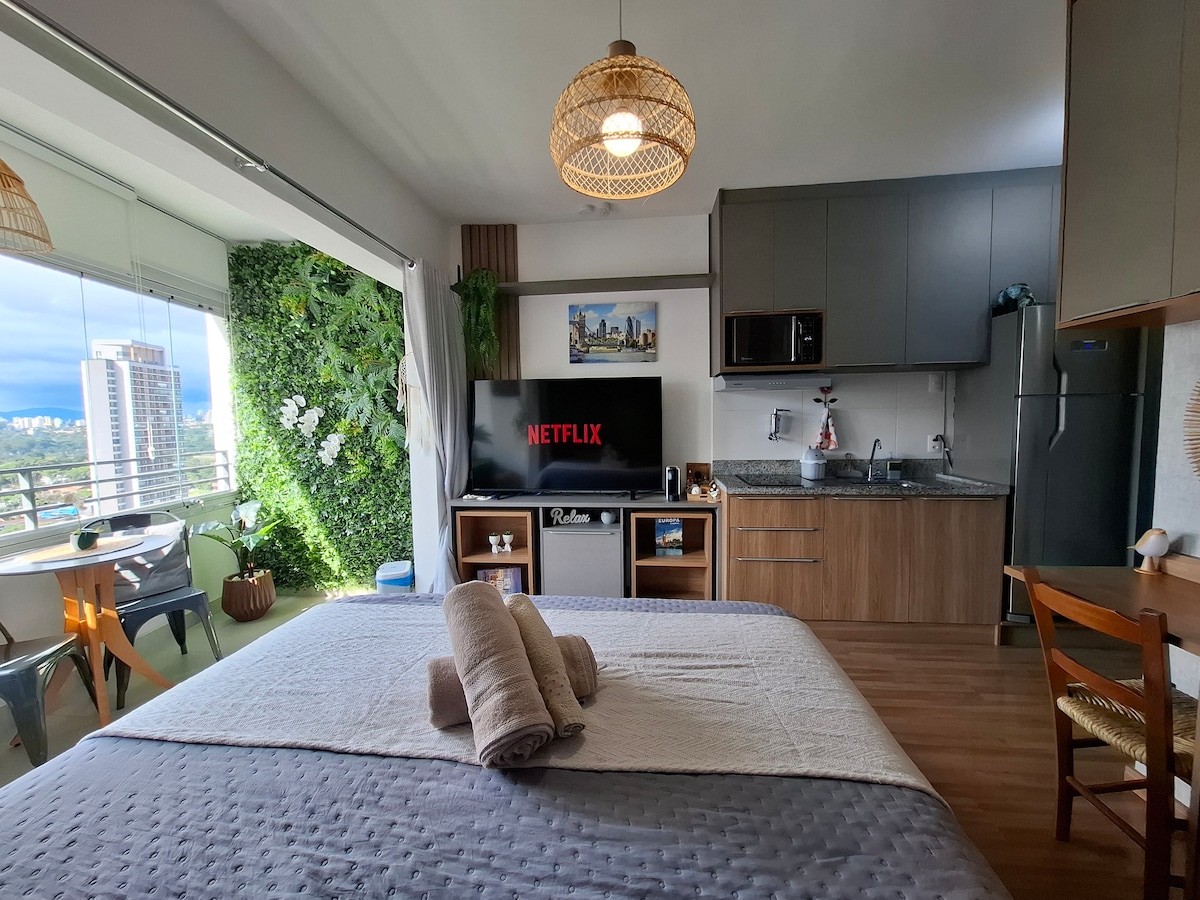 Welcome and make yourselves at home. The apartment is brand new, designed especially for you and has impeccable decor, very practical for everyday life. The view is spectacular! The apartment is on the 28th floor. We are in an excellent location in São Paulo, in the Pinheiros neighborhood, with restaurants, supermarkets and bakeries very close by. It's 40m2 (430 sqft) with 1 bedroom and 1 bathroom. Walking distance from Fradique Coutinho subway station (just 2 blocks).