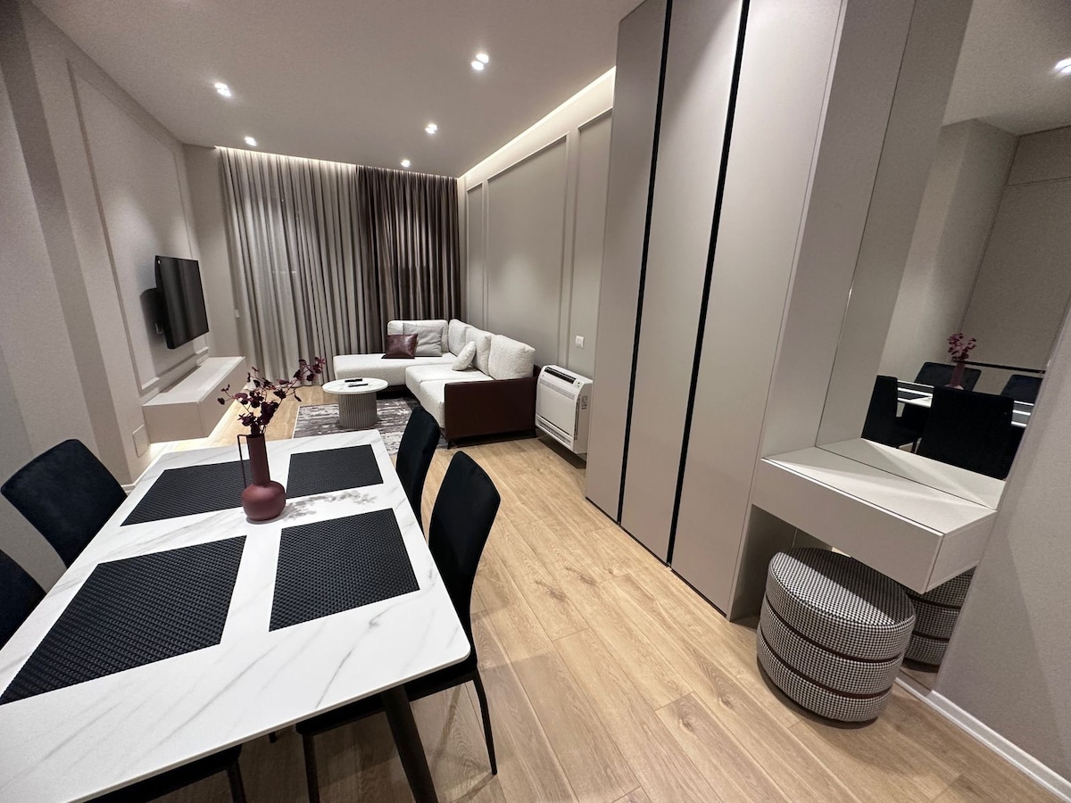 Einn af fallegustu, afslappandi og notalegu apartement er tilbúinn til að taka á móti þér! Fullkomin staðsetning þess, 5 mín göngufjarlægð frá mest skær svæði, Bllok, mun leyfa þér að njóta rölta og skoðunarferðir, svo sem Lake of Tirana, sem er nálægt íbúðinni . Allt sem þú þarft að sjá og heimsækja er í nokkurra skrefa fjarlægð frá íbúðinni! Það er framúrskarandi val fyrir viðskiptaferðamenn, pör og vini.