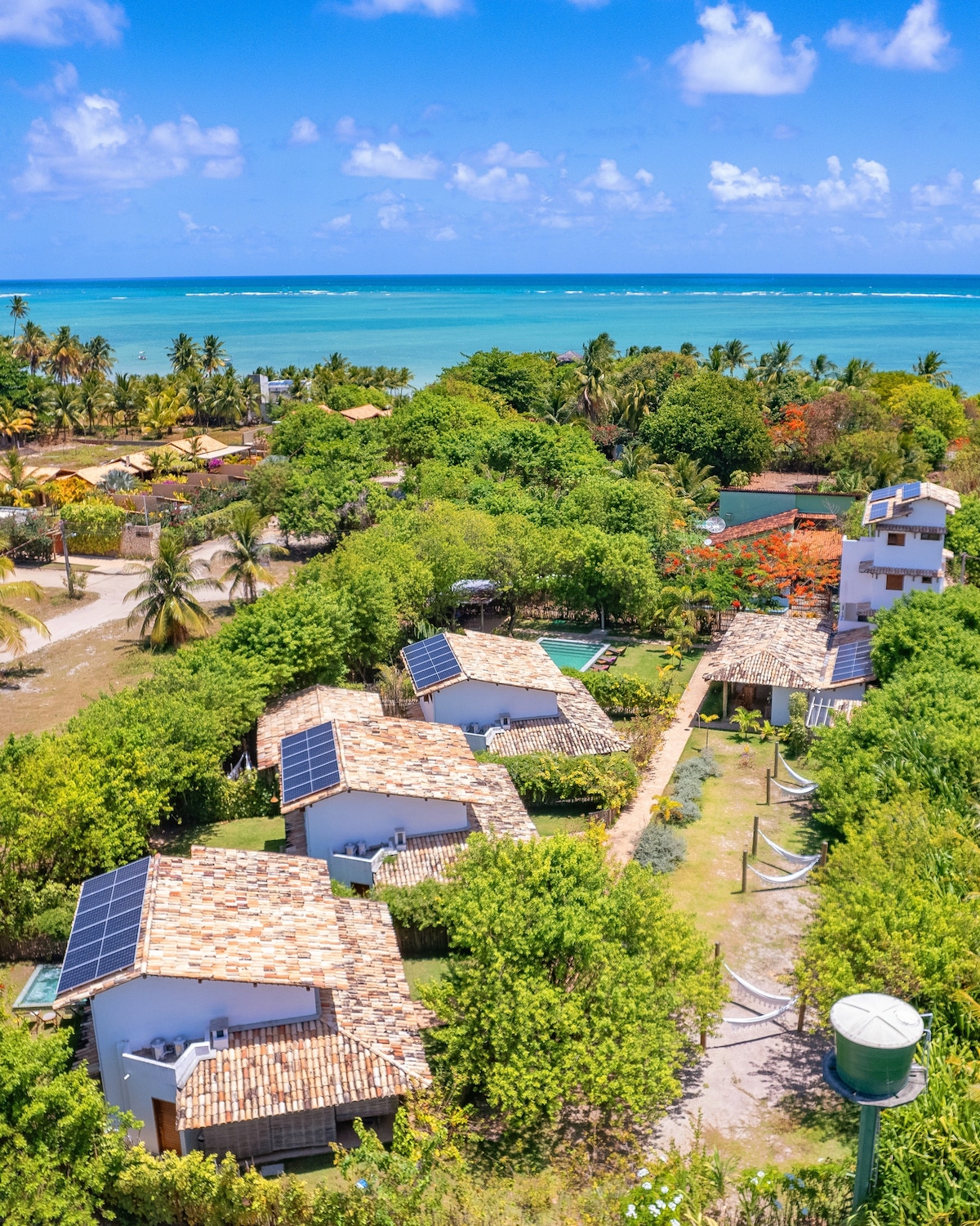 • Ágætis staðsetning: Nálægt ströndinni og kapellunni í Milagres. • Sérstök aðalatriði: Einkaþaksundlaug og grillaðstaða. • Fullkláruð gisting: Þrjú en-suite svefnherbergi með loftkælingu. • Rými innandyra: Þægileg stofa og fullbúið eldhús. • Internet: Háhraðanettenging. • Útisvæði: Rúmgóð verönd með hengirúmi og útsýni yfir kókoshnetulundina sem er fullkomin til afslöppunar. • Öryggi: Einkaíbúð með öryggisgæslu allan sólarhringinn.