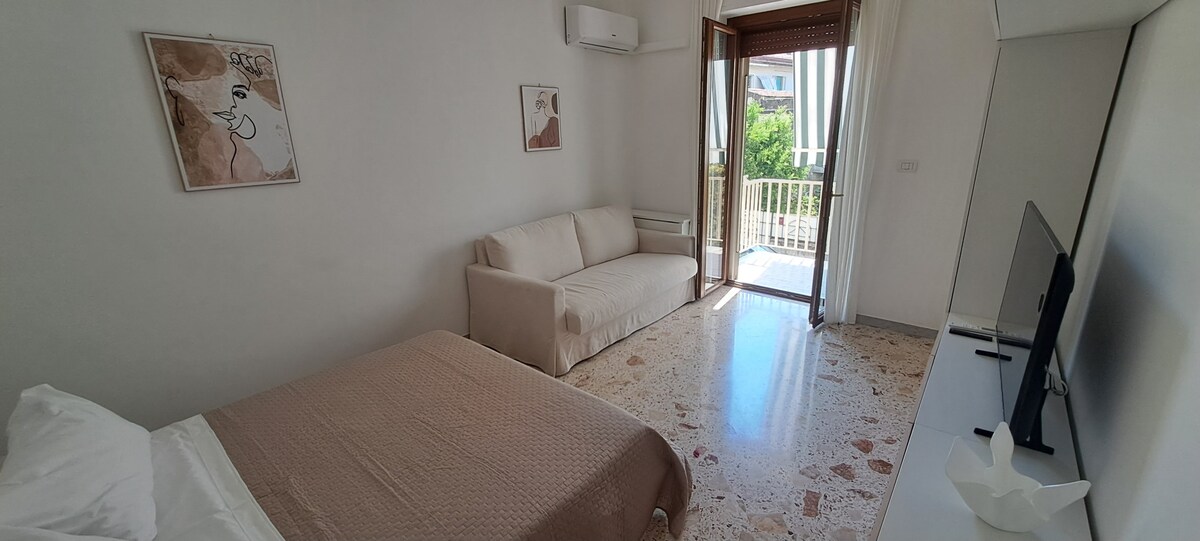 Yndisleg íbúð í hjarta Salerno. Ný, nútímaleg og björt gistiaðstaða sem getur boðið upp á öll þægindi. Það samanstendur af fjölbúnum eldhúskrók, stofu með stórum svefnsófa, hjónaherbergi með opnum fataherbergi, baðherbergi með sturtu og stórum svölum þar sem hægt er að njóta morgunverðar, dögurða eða kvöldverðar utandyra. Búin með Wi-Fi, snjallsjónvarpi, loftkælingu í öllu umhverfi. Frábær morgunverður innifalinn með möguleika á herbergisþjónustu. CUSR 15065116EXT1649