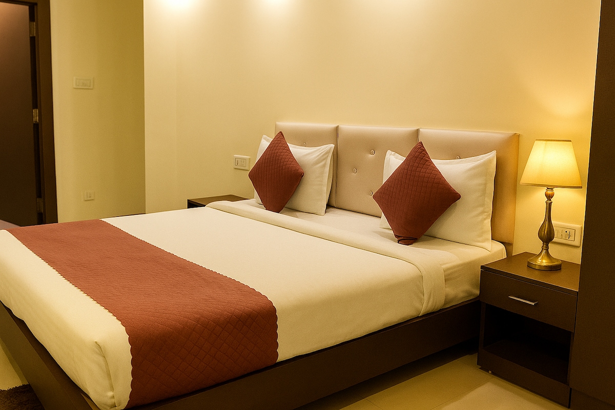 🏡 Rúmgóð 2BHK íbúð með loftkælingu í öllum herbergjum 🚿 Hvert svefnherbergi er með sér þvottaherbergi ✈️ Aðeins 15 mínútur á flugvöllinn 🚉 30 mínútur frá lestarstöðinni 🏙️ Staðsett í miðbænum og greiður aðgangur að helstu áhugaverðu stöðunum 🚕 Ola & Uber í boði í nágrenninu 🍽️ Matarsending frá Zomato & Swiggy við dyrnar hjá þér 🛒 Matvöruverslanir í göngufæri Starfsfólk er til taks 👥 allan sólarhringinn á staðnum til að fá aðstoð 🎛️Einkarafalar fyrir rafmagnsskurð 🚙Ókeypis bílastæði.