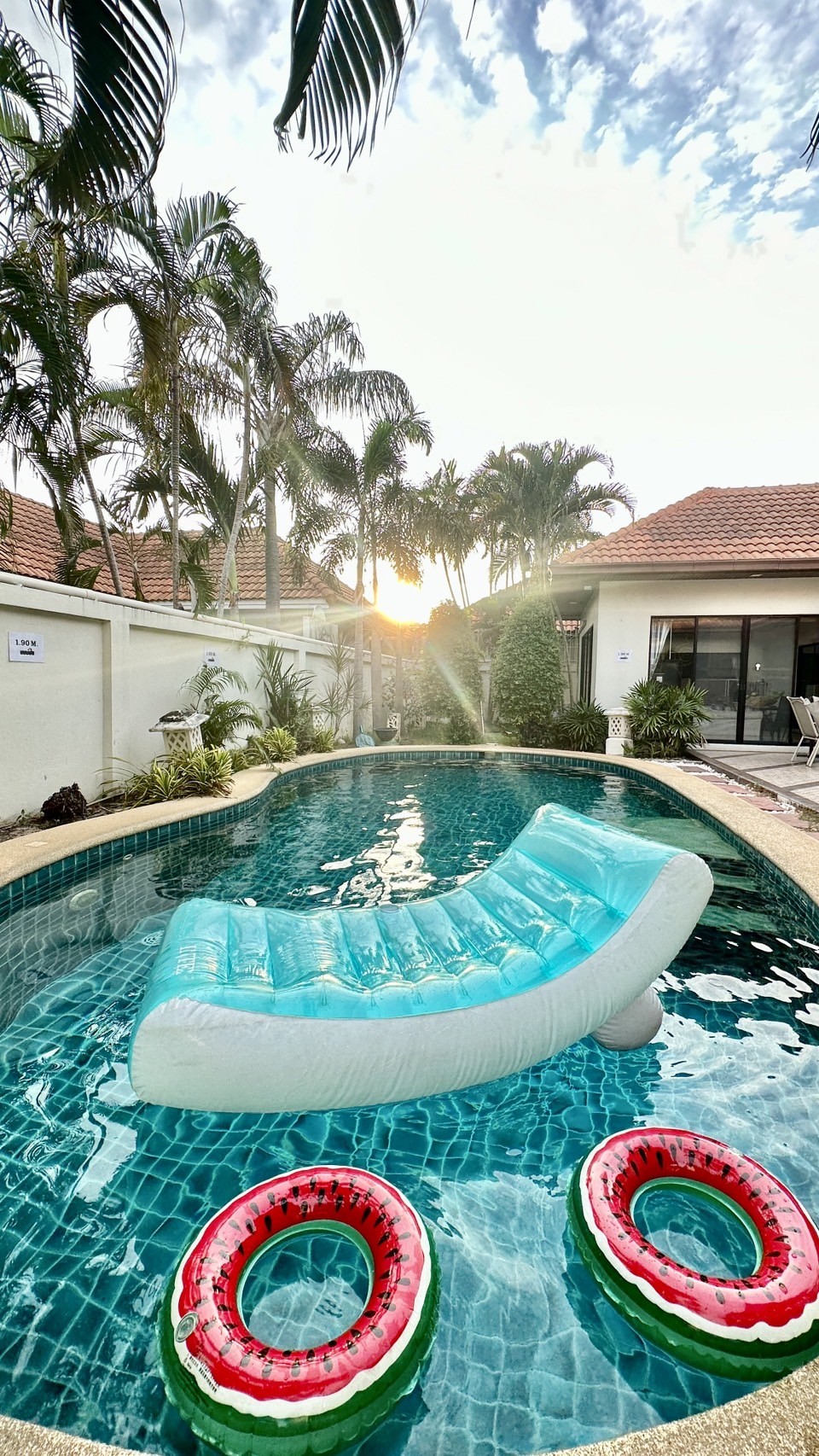 别墅配备了高级的乳胶床垫,让您睡得舒适。 我们的别墅距离芭提雅著名的中天海滩仅800米。可以欣赏美丽的海岸风景,上午在那里购买渔民刚刚出海打捞回来的新鲜海鲜。海边有很多餐厅,还有一个包含小吃、水果、服装、等商品的迷人的小夜市。别墅周边生活便利,711超市近在咫尺,仅需步行200米即可到达,非常便利的满足您的日常需求。 别墅位于知名成熟安全小区Ek Mongkhon Village内,别墅拥有四间宽敞的卧室,4个卫生间。3间卧室都设有独立的卫生间和淋浴间。 这栋别墅位置优越,让您能够尽情领略芭提雅的美丽风光和丰富多彩的生活,为您带来一个充满乐趣与舒适的完美假期! 设施 -私人泳池 -别墅外可停3辆车 -3个卧室都是独立卫生间 -3个卧室1.8米大床,1个卧室1.5米大床 -免费电费+水+高速无线网络 -免费浴巾、毛巾、沐浴露、洗发水、牙刷 -吹风机 -烧烤架 -厨房 没有提供扬声器,啤酒饮料需付费。