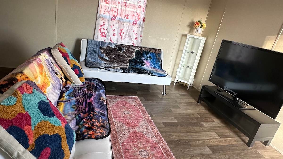 Verið velkomin í friðsæla og einkaafdrepið þitt! Slakaðu á í þessari notalegu og hljóðlátu svítu sem er hönnuð til þæginda og þæginda. Fullbúið eldhúsið er með ísskáp, örbylgjuofn, uppþvottavél, loftsteikingu, crockpot og fleira. Njóttu nútímalegrar sturtu, loftræstingar/kyndingar til þæginda og tvö snjallsjónvörp með þráðlausu neti bæði í svefnherberginu og stofunni. Þvottavél og þurrkari eru þægilega staðsett í húsnæðinu. Ég hlakka til að taka á móti þér í þessari fallegu svítu!