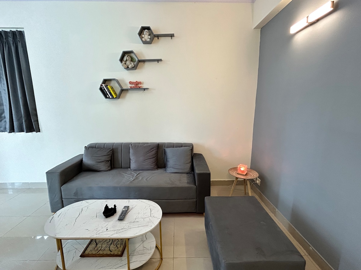 This unique place has a style all its own. The beautiful architecture and design of the suite will give you the luxury you deserve. It is in walking distance from Vvip Style Mall where there is PVR Cinemas and many other restaurants. Swiggy, Blinkit, Zepto and Zomato works here. A 50 inch for netflix and chill. Induction and kettle electronic appliance available in kitchen. Beautiful view from the balcony.