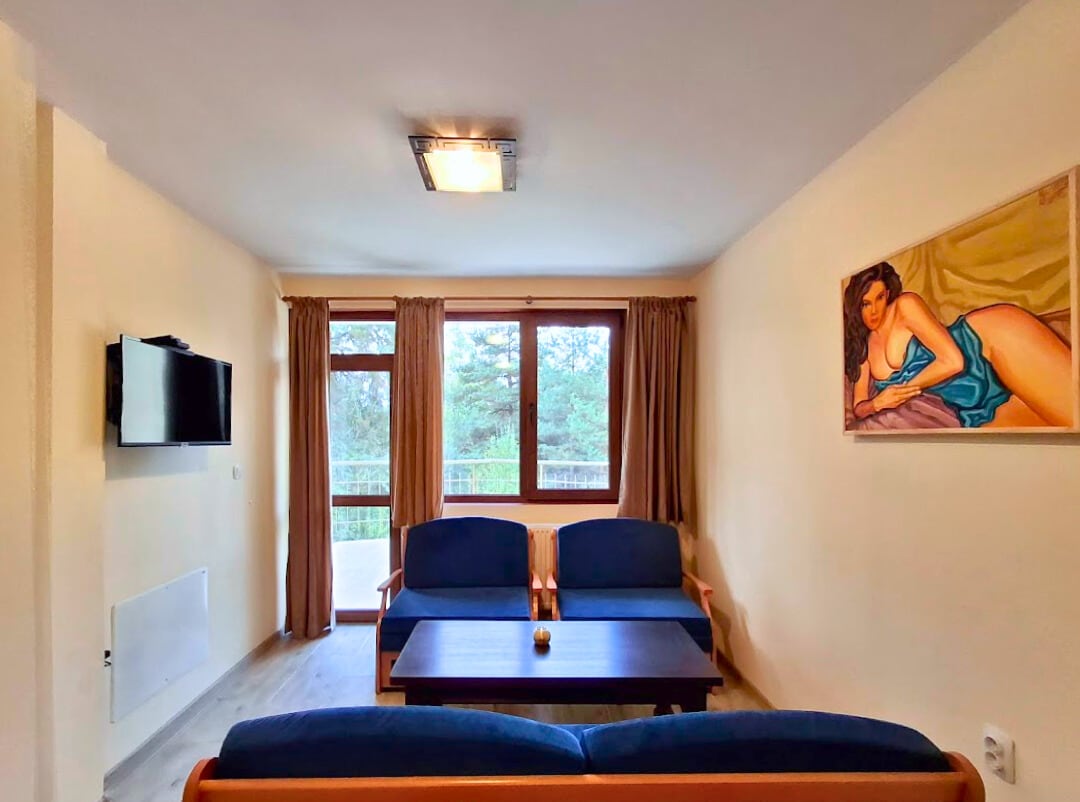 Cozy two bedroom apartment surrounded by pine woods, just 50 m above St. Marina’s Church and a short walk from Batak Lake. Every room offers beautiful mountain views. Includes a fully equipped kitchen, free Wi-Fi, and two comfortable bedrooms — one with a king-size bed and one with two singles. Perfect for couples, families, or friends looking for a quiet nature escape.
