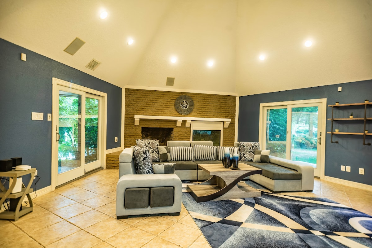 Stökktu inn í töfrandi, nútímalega vin með lúxus og skemmtun. ★ 4 stílhrein svefnherbergi | 3,5 nútímabað | Svefnpláss fyrir 16 gesti ★ Afdrep í einkagarði: Heitur pottur • Garðskáli • Eldstæði ★ Nútímalegt opið rými: 75" snjallsjónvarp og arinn ★ Master-svíta eins og í heilsulind: Djúpt baðker • Opinn sturtuklefi • Sérstök vinnustöð: Háhraða þráðlaust net • Fullbúið kokkeldhús • Hengirúm utandyra og ljósaseríur • Frábær staðsetning: Nokkrar mínútur frá miðborg Houston • Snyrtivörur og nauðsynjar án endurgjalds
