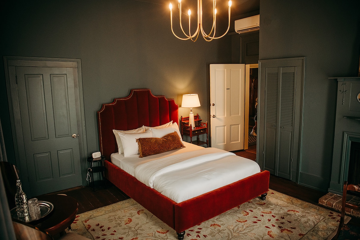 Það er lítið anddyri í þessari svítu ef þú ert eitthvað sem þú þarft að koma með en getur bara ekki farið út af heimilinu án þess! Það eru litlar svalir með útsýni yfir Washington Street sem kallar á Rómeó eða Rapunzel til að slaka á hárinu. Þú munt ekki vilja skilja þessar push digs! Eldstæðið er aðeins í fagurfræðilegum tilgangi.
