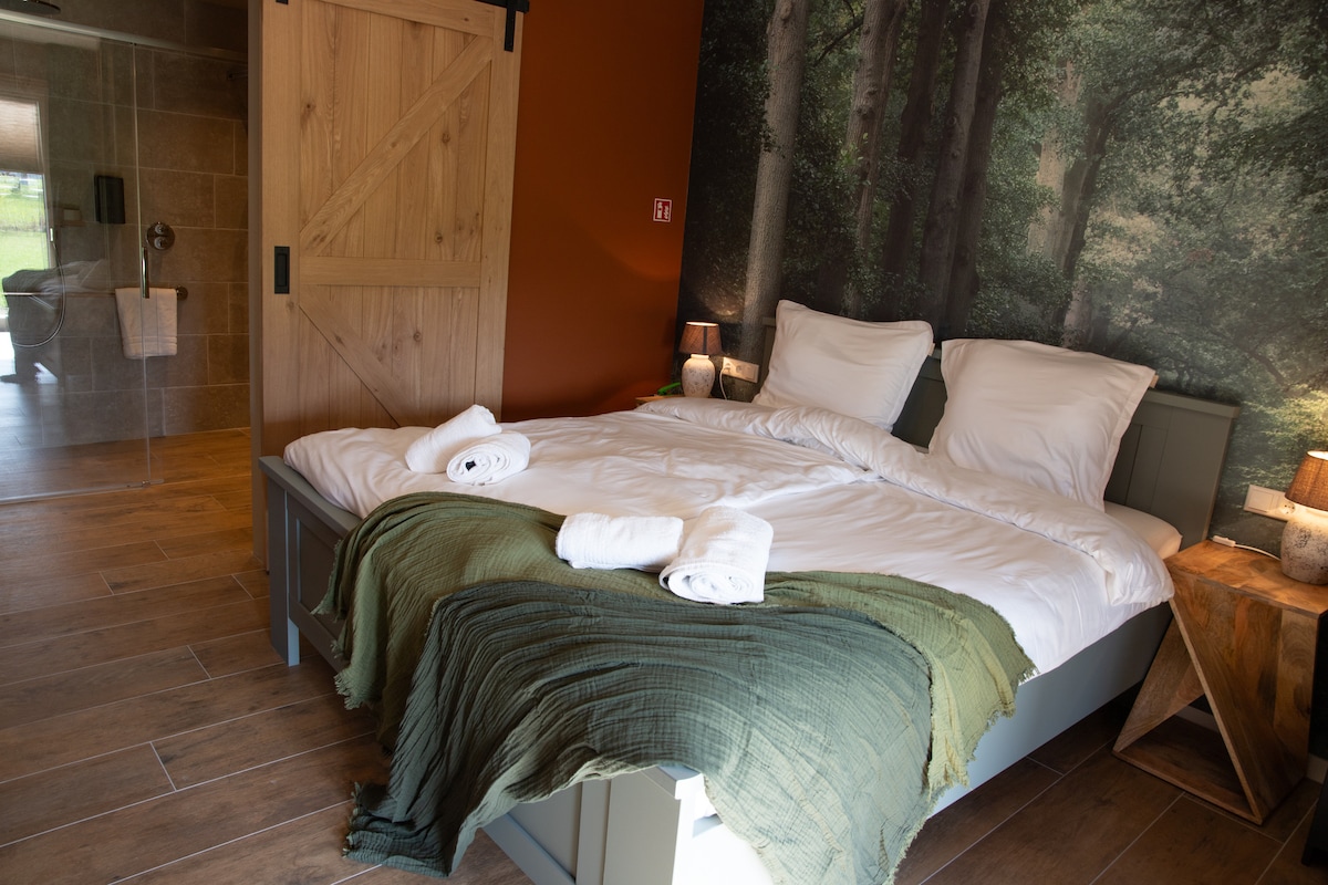 Slakaðu á og hægðu á þér í þessu fallega, stílhreina rými. Staðsett á 1. hæð „íbúð“ með sérinngangi er hluti af litla tjaldstæðinu de Torenvalk. Tjaldsvæðið er fallega landslagshannað og með grænu útliti. Skipulag: Inngangur - lending - svefnherbergi - eldhús-stofa með setu - rúmgott baðherbergi (handklæði fylgja) - verönd til að fara inn í gegnum svefnherbergi.