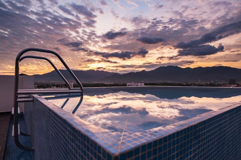 Í NÝJU íbúðinni okkar er magnað sólsetur á þaksvölunum okkar með útsýni yfir hafið og fjöllin. Einfaldlega magnað. Nýtískuleg eign okkar inniheldur allt sem þú þarft til að líða eins og HEIMA hjá þér. Endalaus sundlaug á þaki, grill og líkamsrækt? Já! Nefndum við að staðsetningin er alveg ótrúleg? Þú verður í innan við 10 MÍNÚTNA GÖNGUFJARLÆGÐ frá ströndinni, veitingastöðum, börum, matvöruverslunum, verslunarmiðstöðvum, kvikmyndahúsum og sjúkrahúsi. Við erum einnig í 10 mínútna akstursfjarlægð frá Maleçon, Romantica og Marina!