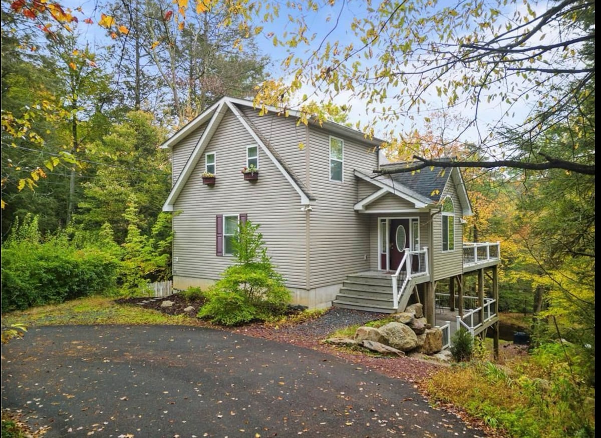 Staðsett í litlu einkasamfélagi við stöðuvatn, umkringt fallegum rhododendronum. Nálægt fjölmörgum gönguleiðum, þar á meðal Hickory Run, D&L Trail, Switchback Mountain, Glen Onoko og mörgum öðrum! Einnig innan 45 mínútna frá mörgum skíðasvæðum, þar á meðal Blue Mountain, Camelback, Jack Frost og mörgum öðrum! Einnig er 15 mínútna akstur í sögulega miðbæinn Jim Thorpe. Slakaðu á með allri fjölskyldunni í þessari friðsælu gistingu en vertu samt nálægt öllu því sem Poconos hefur upp á að bjóða.