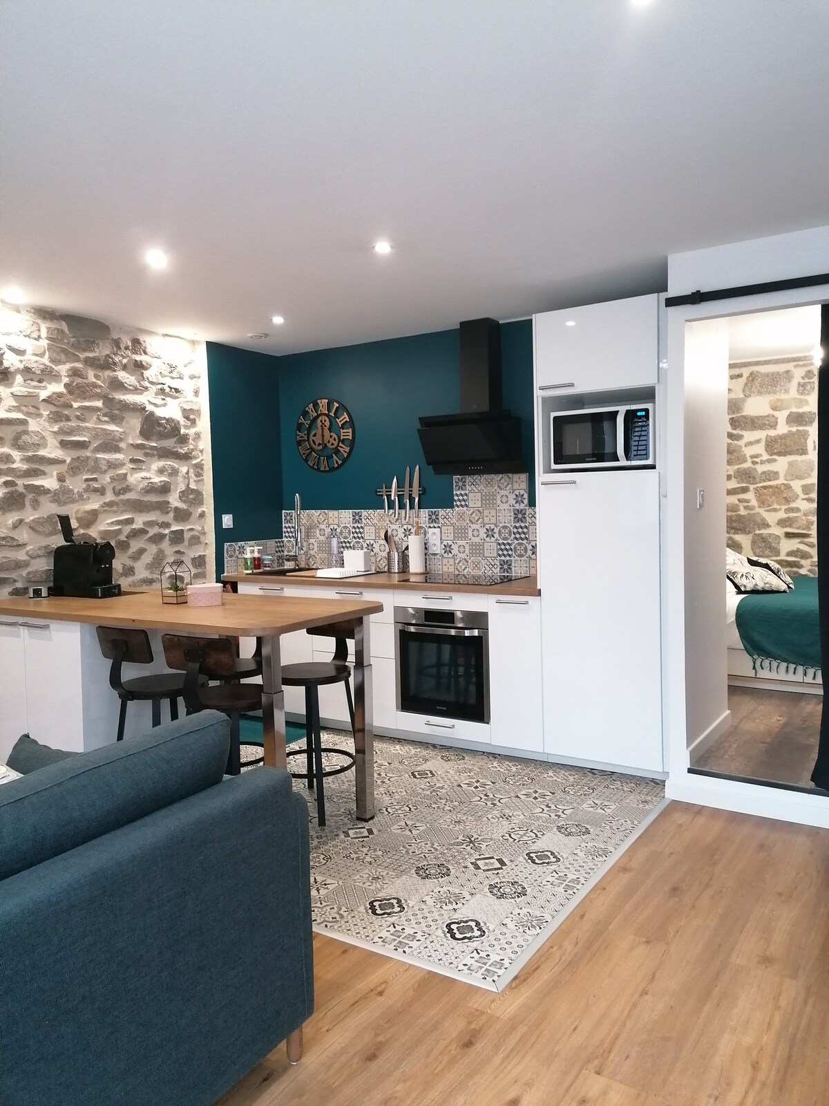 Í stórri eign okkar bjóðum við upp á íbúð fyrir pör, fjölskyldur og vini. Hún samanstendur af einni stofu með svefnherbergissvæði með 160×200 rúmi, fullbúnu eldhúsi, zen-svæði með nuddpotti, sjónvarpssvæði með svefnsófa, baðherbergi með sturtu og útisvæði. Möguleiki á að bóka pakkaðan hádegisverð á 50 evrum fyrir tvo og morgunverð á 7 evrum á mann. Nærri borginni og síkinni, 10 mín. frá miðborg.