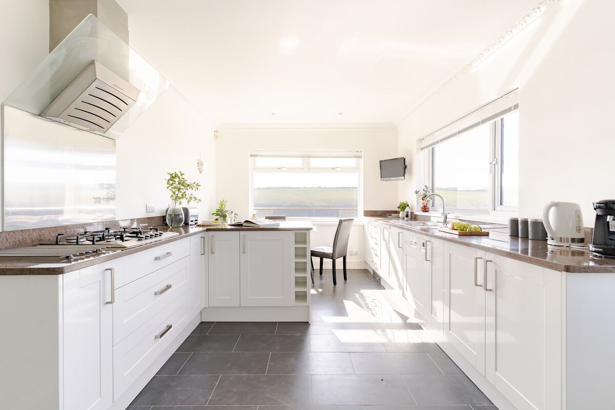 Þessi fallega hannaða fjögurra svefnherbergja strandgististaður er staðsettur á eftirsóttu svæði Pentire, Newquay og býður upp á fullkomið jafnvægi milli róar og lúxus. Þegar þú horfir á sólarupprásina frá efstu veröndinni með stórfenglegu útsýni yfir hafið við Gannel og Crantock-ströndina er auðvelt að slaka á á þessum friðsæla stað. Í 5 mínútna göngufjarlægð er Fistral Beach, höfuðborg brimbrettamanna, og í 10 mínútna göngufjarlægð er líflegt miðbærinn.