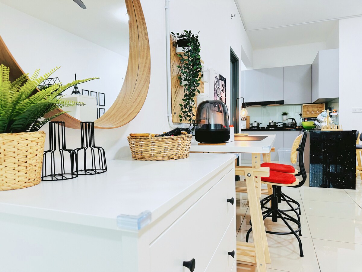 Verið velkomin í Metropol by BRB, nýja íbúð á háum hæðum með þremur svefnherbergjum og tveimur baðherbergjum í Bukit Mertajam, Penang. Hentar 6 gestum með 3 queen-size rúmum, snjallsjónvarpi (YouTube og Netflix) og 600 Mbps þráðlausu neti. Njóttu útsýnis yfir sundlaug og hrísflöt og fáðu aðgang að sundlaug, ræktarstöð, gufubaði, himnastofu og leikvangi. 10 mín. að Penang-brú og Sunway, 5 mín. að KPJ-sjúkrahúsinu, veitingastöðum, bönkum og fleiru.