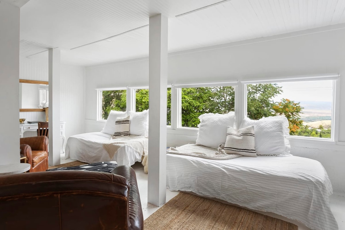 Þetta nýuppgerða (2025) nútímalega eyðimerkurstúdíó býður upp á fullkomna blöndu af næði og þægindum. Þó að það sé fest við aðalhúsið með tvöföldum hljóðeinangruðum útidyrum er það með aðskildum inngangi sem tryggir fullkomið næði og friðsælt afdrep. Inni er íburðarmikið rúm í king-stærð sem skapar fullkomið rými til hvíldar og afslöppunar. Stórir gluggar ramma inn magnað útsýni yfir eyðimörkina í kring, fyllir stúdíóið af náttúrulegri birtu og býður upp á kyrrlátt og rólegt andrúmsloft.