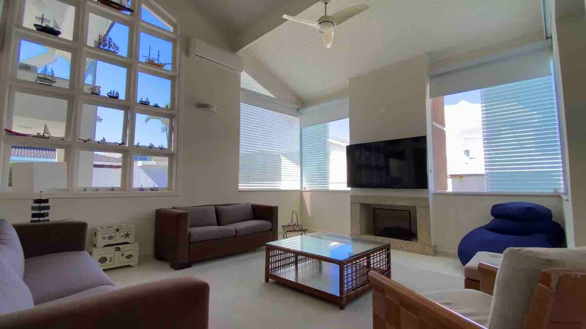Esta acomodação elegante é perfeita para viagens em grupo: 5 quartos,sendo 1 reversível(sala/quarto) *Suite Master com Banheira Pretty jet, e Varanda.*Suite no térreo com acessibilidade. 5 salas sendo: Sala de Almoço/ de jantar, Living, Sala de Lareira, Sala de TV, Ar condicionado nos 3 quartos (andar superior)Jardim Privativo, 9 camas, 6WC. Piscina adulto,piscina infantil decorada, *Área Gourmet, Churrasqueira No condomínio tem Quadra poliesportiva/ vôlei,e playground.