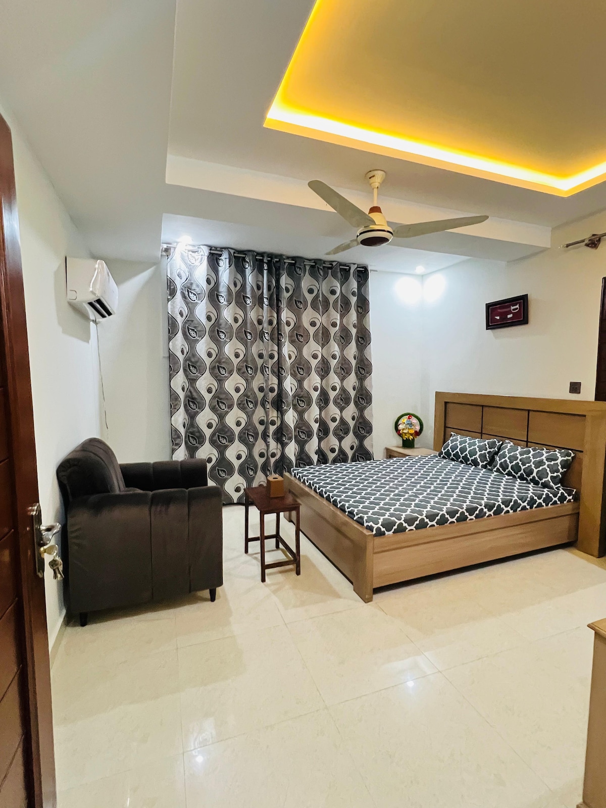 Welcome to our cozy and modern 1-bedroom apartment located on the bustling Main Gulburg in Peshawar. Perfect for families, couples, or business travelers, this apartment offers a comfortable and convenient stay in the heart of the city. Key Features: Spacious Living Area, Fully Equipped Kitchen, Comfortable Bedrooms, Modern Bathrooms, Balcony with a View, High-Speed Wi-Fi, 24/7 Security, Prime Location Why Choose Us? Impeccable Cleanliness, Personalized Service, Affordable Comfort