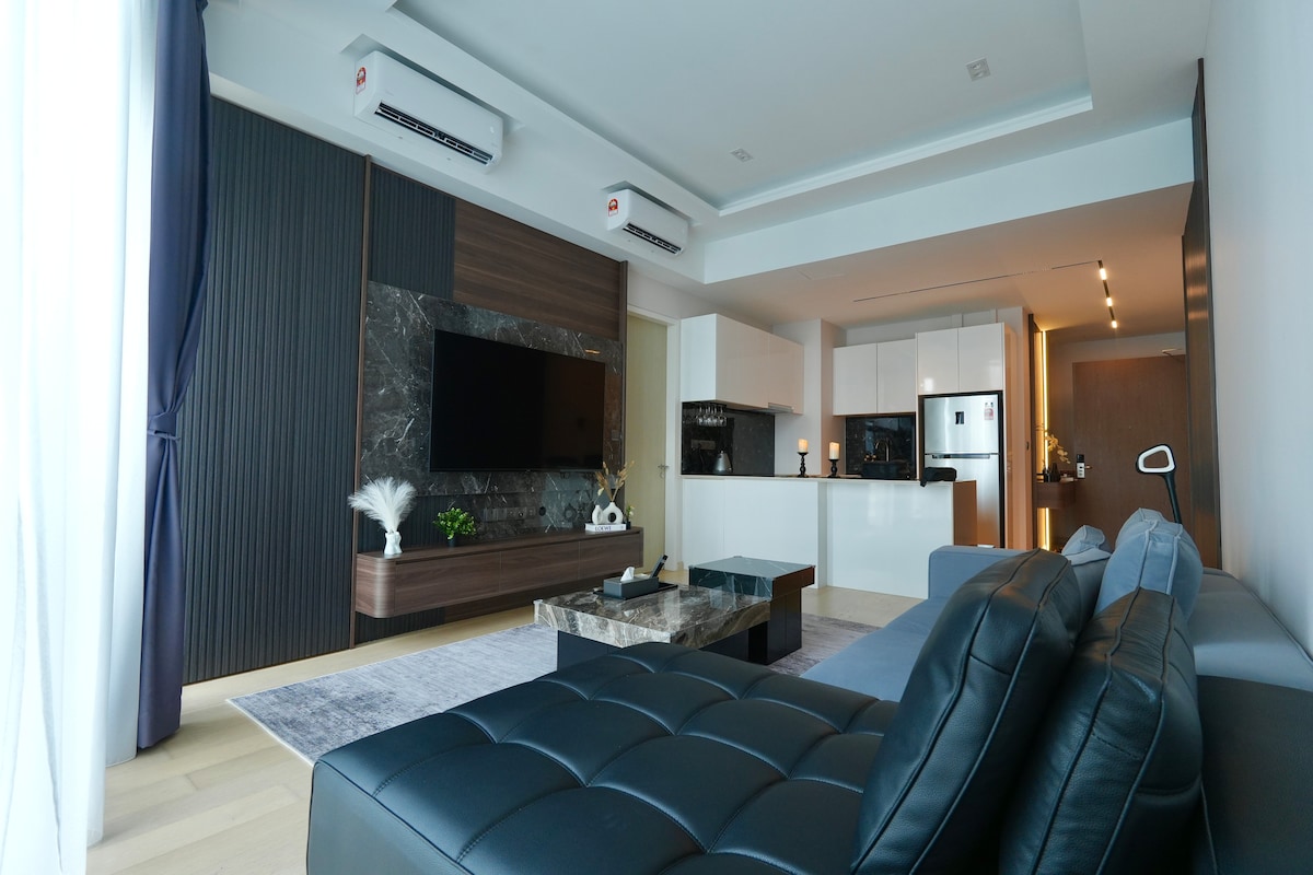 您好, 我们也说中文! Verið velkomin í heillandi íbúð okkar með 1 svefnherbergi í Bukit Bintang, líflegasta og arfleifðarríkasta svæðið í KL. Stígðu út á svölum og njóttu óhindraðs, stórfenglegs útsýnis yfir táknræna Merdeka 118-turninn sem rís glæsilega yfir borgina, ógleymanlegt sjónarhorf bæði að degi og nóttu. Innandyra er king-size rúm, fullbúið eldhús og stofa sem er hönnuð fyrir þægindi og afslöngun svo að íbúðin okkar bjóði upp á fullkomið heimili til að upplifa það besta sem Kuala Lumpur hefur að bjóða.