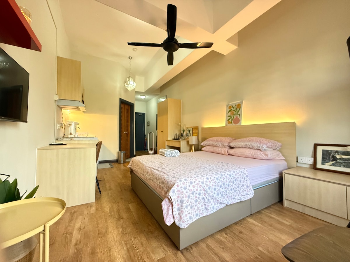 Fallegar svalir með borgarútsýni @ The Establishment Bangsar Verið velkomin í glæsilegu stúdíóeininguna okkar á EST Bangsar sem er tilvalin fyrir tvo gesti, sérstaklega fyrir par. Við leggjum hjarta okkar í að skreyta þetta stúdíó svo að það gefi 2 einstaklingum hentuga stund. Þú finnur fullbúið eldhús, notalega svefnaðstöðu og nútímalegt baðherbergi ásamt hápunkti eignarinnar: Fallegar svalir. Fullkominn staður til að slaka á og njóta útsýnisins yfir borgina. Upplifðu borgarlífið með kyrrð í þessu yfirgripsmikla stúdíói.
