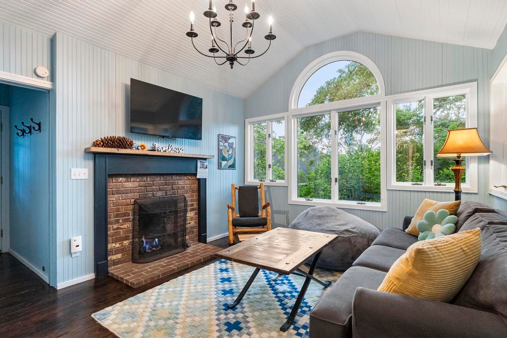 Þessi nýuppgerða raðhúsaeining býður upp á stofu, borðstofu og eldhús í sumarbústaðastíl. Það eru þrjú svefnherbergi uppi : king, queen og twin með trundle rúmi. Sameiginlegt þilfar og stór garður er til staðar. Það er mjög hreint og þægilegt. Rúmföt, teppi, koddar og handklæði eru til staðar. Eldhúsið er fullbúið. Við erum með eina loftræstingu fyrir glugga niðri og eina uppi og gluggaviftur. Við götuna er eitt bílastæði vinstra megin við eignina og aukabílastæði.