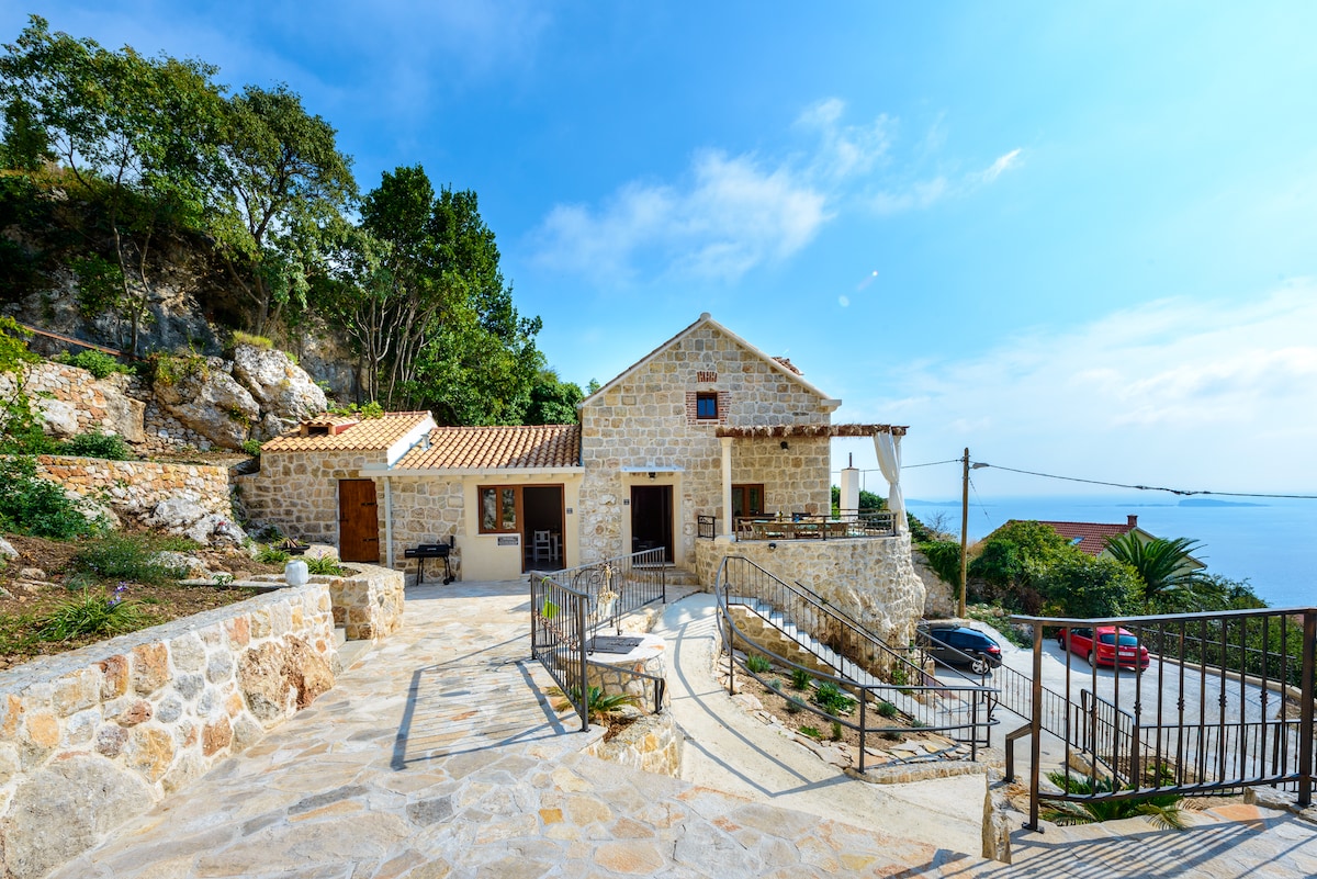 Þessi töfrandi steinvilla er staðsett á 1500 m2 lóð sem er falin augum annarra fyrir þá sem leita að rólegu hverfi og einstöku næði. Útsýnið sem tekur andann er endalaust með ótrúlegu útsýni yfir sjóinn og Zupa-flóa. Aðeins í nokkurra mínútna fjarlægð frá stórfenglegri strönd Króatíu, röð veitingastaða og bara og hinni frægu fornu borg Dubrovnik.