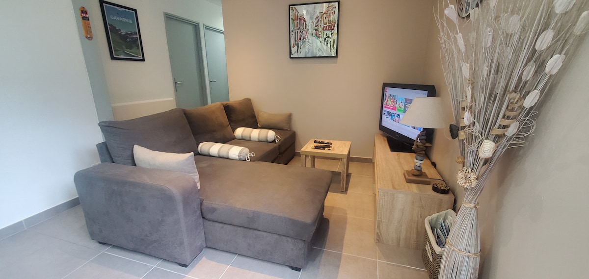 Ce logement paisible offre un séjour détente pour toute la famille avec terrasse, jardin et très belle vue sur les montagnes. Résidence l'orée des monts TRES IMPORTANT Merci de lire l'annonce en entier ... linge de maison non fourni ....pour éviter les désagréments A 200 m du villages et des commerces, et de toutes les activités : Balnea, pedalos paddle canoe, piscine exteriteure ludeo, parapente ....