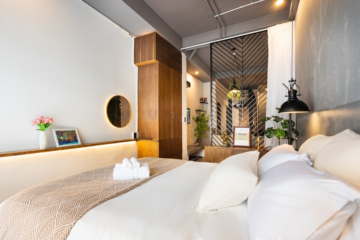 Stökktu á iðnaðarheimili í hjarta Saígon. Óviðjafnanleg miðlæg staðsetning: 5 mínútur að Ben Thanh-markaðnum og Bui Vien-göngugötunni, 10 mínútur að Bach Dang Wharf-garðinum. Sérstök fríðindi: ⭐ Lyfta ⭐ INNIFALIN auka handklæði (gegn beiðni) ⭐ INNIFALIÐ þráðlaust net og Netflix ⭐ ÓKEYPIS ÞVOTTAVÉL ⭐ ÓKEYPIS sjampó og líkamssápa ⭐ ÓKEYPIS nauðsynjar fyrir búr og eldunartæki **Vinsamlegast tryggðu að allir gestir, þ.m.t. gestir sem gista yfir nótt, séu innifaldir í bókuninni.