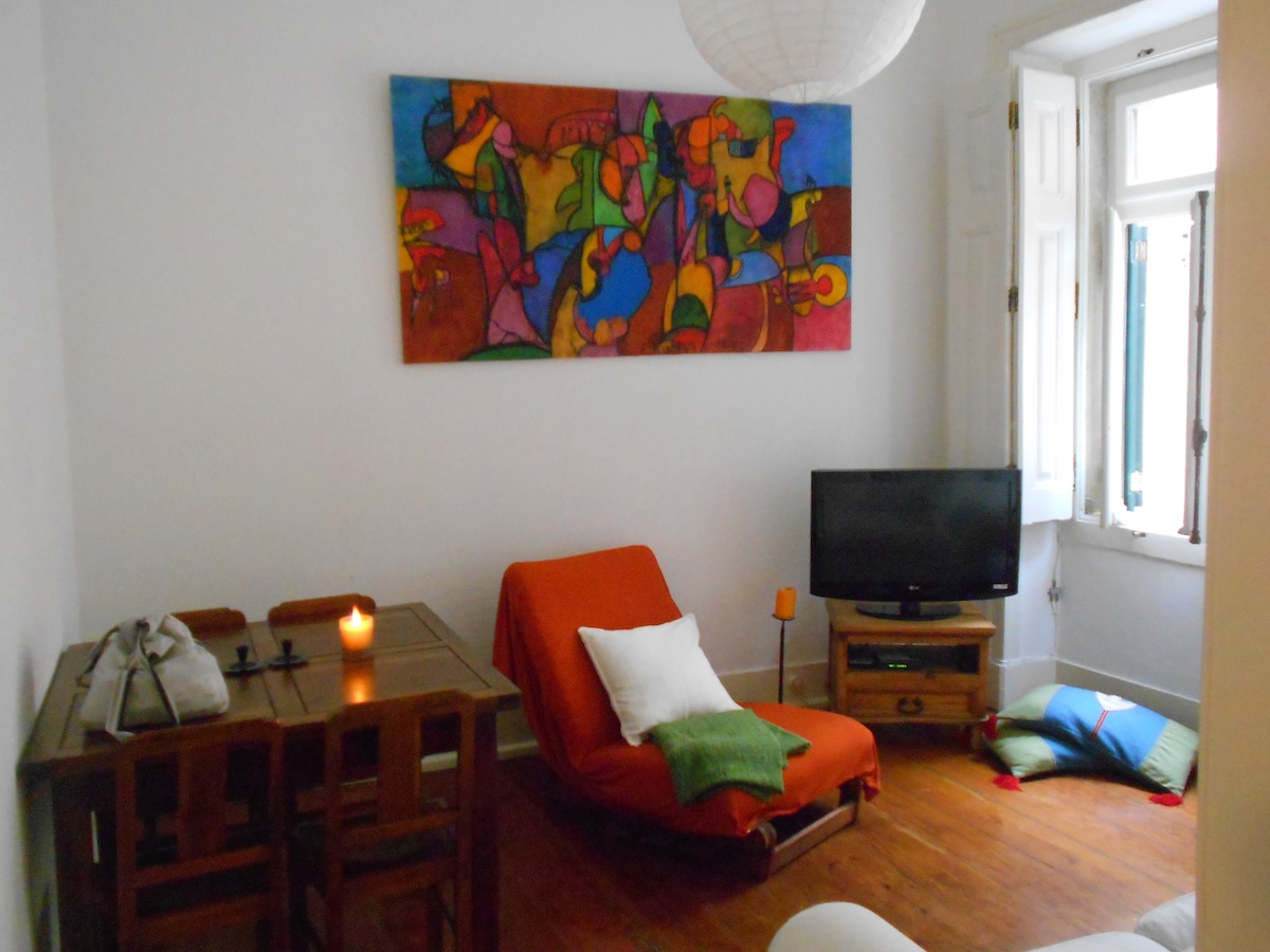 Bright apartment in the heart of Lisbon, full of portuguese traditional tiles. A wonderful place to stay in an historical area, ten minutes walk from Chiado (metro station) and Bairro Alto, close to a lot of trendy bars, restaurants and shops. The famous 28 tram, which can take you to Baixa and most known monuments such as Castelo de S.Jorge, stops just in front of the apartment. Walking distance to train stations that can take you to Belem, Cascais and Sintra. Equipped with air conditioning.