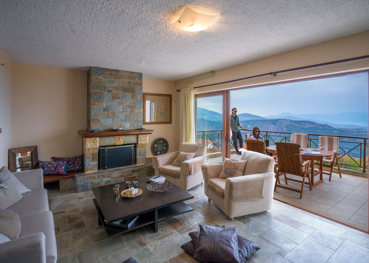 Lúxusvilla einu skrefi frá sjónum bíður þín! Mjög þægileg svefnherbergi, þar af tvö með eigin baðherbergi og ótrúlegu útsýni til sjávar. Friðsælt hverfi fyrir framan sjóinn með tafarlausum aðgangi að ströndinni frá annarri hliðinni sem og tafarlausum aðgangi að þjóðveginum sem tengir Galaxidi, þar sem við erum staðsett, að Delphi og skíðamiðstöðinni í Parnassus.