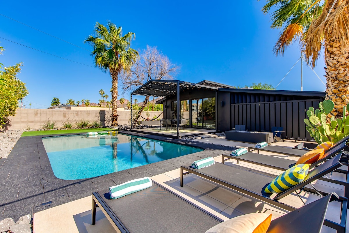 Þetta ítarlega hannaða rými er í nokkurra mínútna fjarlægð frá virtustu áfangastöðum á staðnum (Biltmore, Old Town Scottsdale, Downtown Phoenix, Arcadia). Allt var vandlega úthugsað til að upplifun gesta yrði þægileg og afslappandi. Tvö svefnherbergi með king-size rúmum. Rennihurðir að einkagarði í Zen-stíl til að njóta inni- og útiveru í Arizona. Fullbúið eldhús fyrir grunnmatargerð. Yfirbyggð bílastæði. Nokkrar af bestu verslunum og veitingastöðum í nágrenninu. INNIFALIÐ 👇