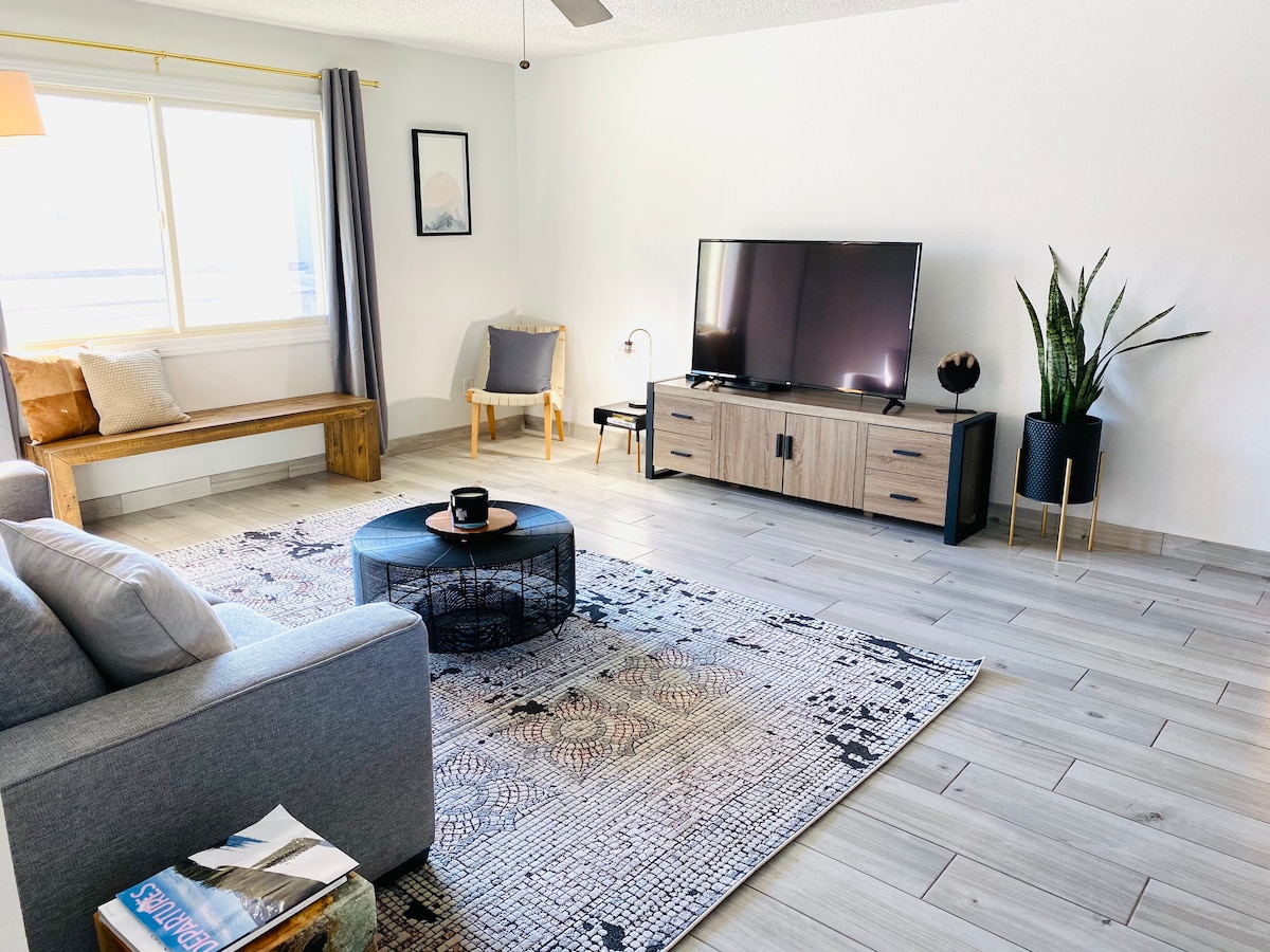Verið velkomin í Scottsdale Great Escape, rúmgóða og sólbjört afdrepið þitt. Opið skipulag býður upp á mikla náttúrulega birtu sem skapar hlýlegt og notalegt andrúmsloft. Hvort sem þú ert hér til að vinna eða slappa af erum við með háhraða þráðlaust net í sérstakri vinnuaðstöðu, fullbúnu eldhúsi, yndislegri verönd í bakgarðinum með útigrilli og notalegum sófa þar sem þú getur slakað á og notið uppáhalds sjónvarpsþáttanna þinna. Til að auka þægindi er meðfylgjandi bílskúr.