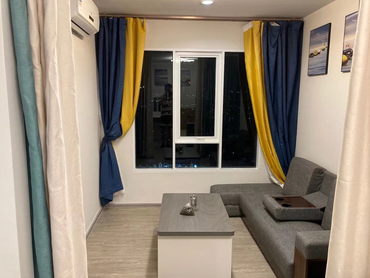✨Njóttu friðar og næðis á efstu hæðinni, fullkomið til að slaka á eftir langan dag Íbúðin er við hliðina á MRT Phetkasem 48, sem gerir það afar þægilegt að skoða Bangkok. Þú getur farið beint til Silom, Wat Mangkon eða Sukhumvit án þess að skipta um lest Ef þú vilt taka lestina er Bang Wa-stöðin aðeins eina stöð í burtu Svæðið er rólegt og öruggt, með verslunarmiðstöðvum í nágrenninu, á meðan staðbundnir veitingastaðir og 7-Eleven eru í göngufæri. Friðsælt heimili með þægindum borgarinnar💕