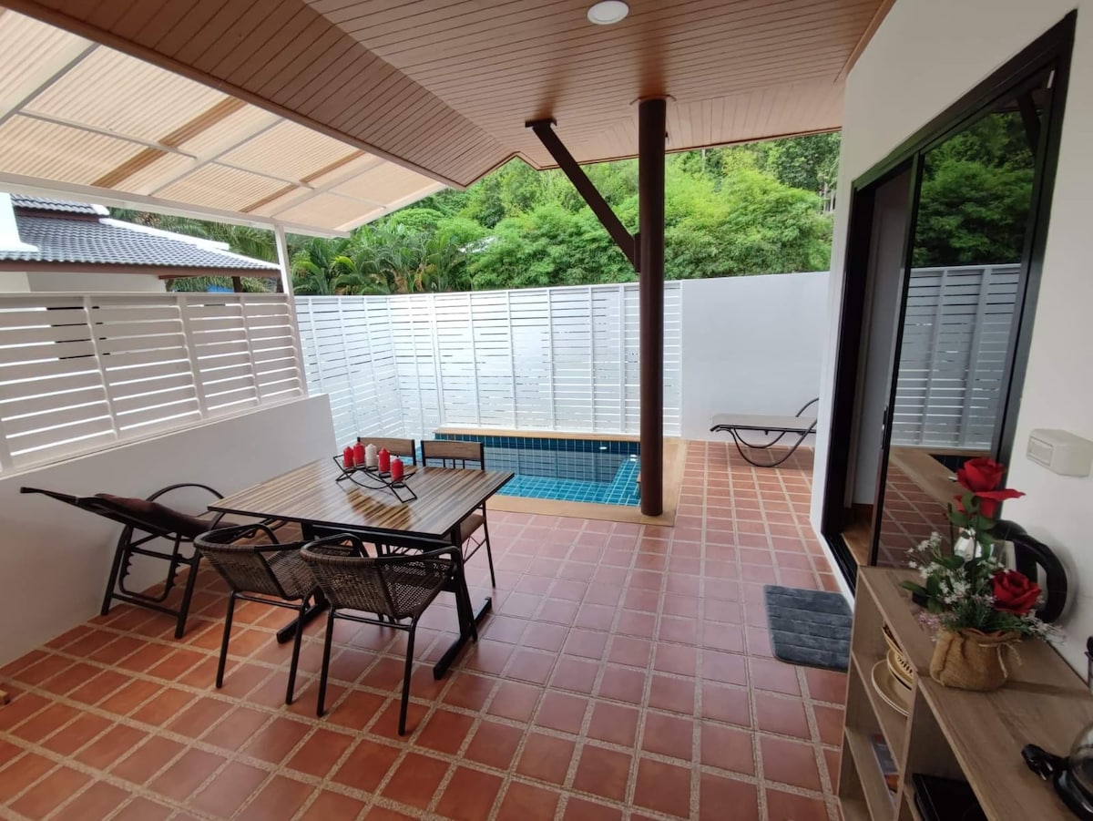 Lítil einkagististaður okkar (ekki hótel) með 4 bústaði og 3 íbúðum er staðsettur í rólegu umhverfi fjarri hávaðasömum götum. Allar einingar eru með 10 m² verönd með útsýni yfir fallega hannaðan garð með litlum sameiginlegum sundlaug (um 7 m x 5 m). Börn eru ekki leyfð. U.þ.b. 1.200 m (16 mínútna ganga) að ChaoFah Road, u.þ.b. 1.400 m (18 mínútna ganga) að Palai-strönd (ekki hentugt til sunds). Engir barir mjög nálægt.