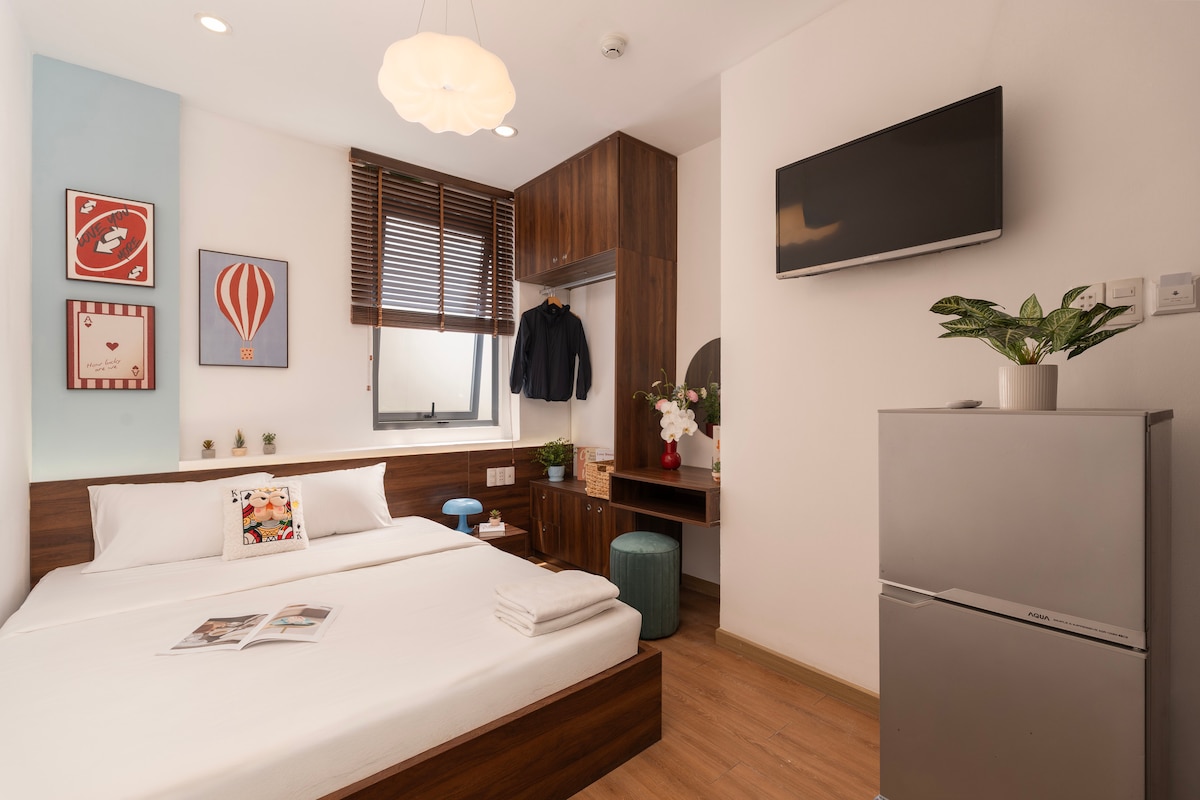 Stofnað árið 2023, Við bjóðum upp á hágæða Short og Long Let Serviced Apartments staðsett rétt við upptekinn götu með frægum kaffihúsum, veitingastöðum, Circle K og þægilegum verslunum nálægt og aðeins nokkrar mínútur að ganga að Bui Vien göngugötunni, Tao Dan Park. Kostnaðarsamt miðað við hótel bjóðum við upp á 1 BR þjónustuíbúðir með næði, nútímalegum stíl, eldhúsi, svölum, hljóðeinangruðum dyrum og gluggum, skrifborðsrými til að vinna, þakgarði, lyftu, reglulegum þrifum og þægindum „heimilisfjölskyldu“.