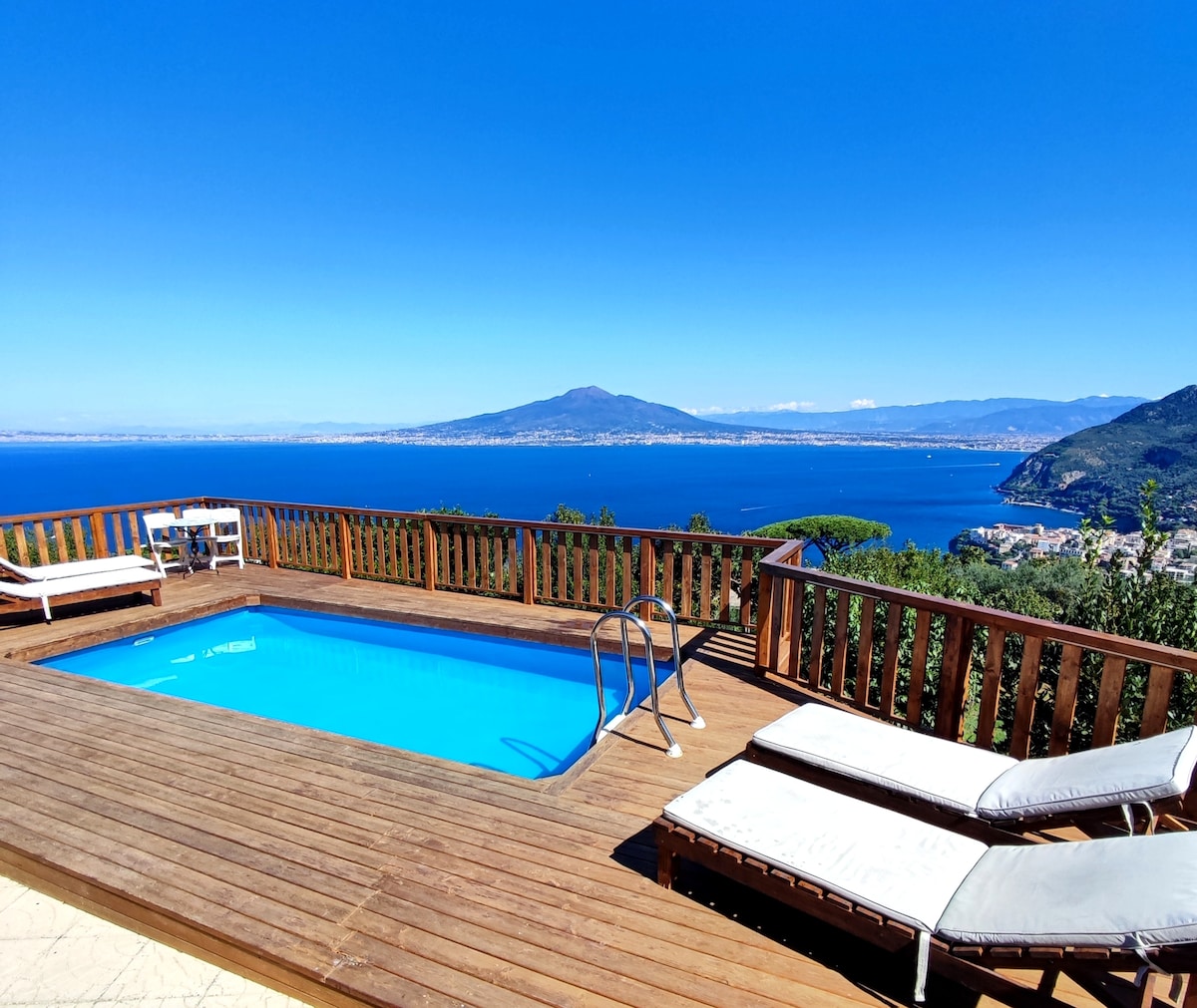 Typical italian villa surrounded by greenery and quiet of a farm. Ideal for those who want to visit Sorrento, Capri and the Amalfi coast but enjoy peace and tranquility. One km far from the city center and from Meta train station. The villa is a single building consisting of two private bedrooms, kitchen and living area with 2 sofa beds, two bathrooms. Private terrace and garden with sofas and sun loungers. Seasonal swimming pool, pool table and wood oven with tavern available for guests.
