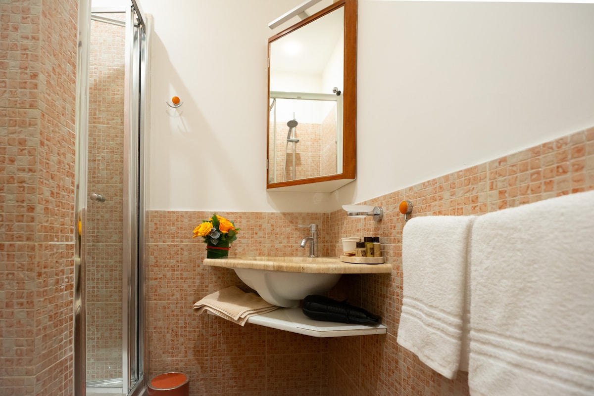 Falleg íbúð í 500 metra fjarlægð frá Colosseum í sögulega miðbænum, á annarri hæð í byggingu frá 1880, með viðarlofti, fáguð, fáguð og búin rómantískri verönd. Tilvalið fyrir par og býður upp á möguleika á að leyfa tveimur öðrum drengjum að sofa í stofunni þar sem er þægilegur svefnsófi. Gistingin er með upphitun, snjallsjónvarp, þráðlaust net, þvottavél, loftkælingu og fullbúið eldhús með uppþvottavél, katli, kaffivél og örbylgjuofni.